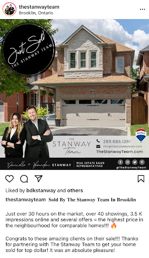 I always knew the next time I was involved in a home purchase or sale I would contact the Stanway’s. I’ve bought and sold several homes over the years and to say Danielle and Brandon exceeded my expectations doesn’t even begin to describe how happy I am. From the initial viewing of the house I wanted to see to actually organizing, staging and selling my home within 10 days they went above and beyond! They introduced me to a wonderful stager and photographer also! Everyone involved matched their outstanding service. I truly can’t say enough about this wonderful sales team! Stanway is the only way isn’t just catchy it’s 100% accurate! My first offer of list price was accepted and my house sold WAY over list! I got the absolute best of both worlds and the delivered on every promise! Do yourself a favour and find a house you love and call the Stanway’s……you’ll be so glad you did!!!!!
